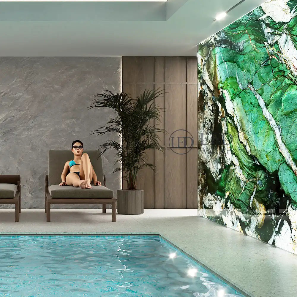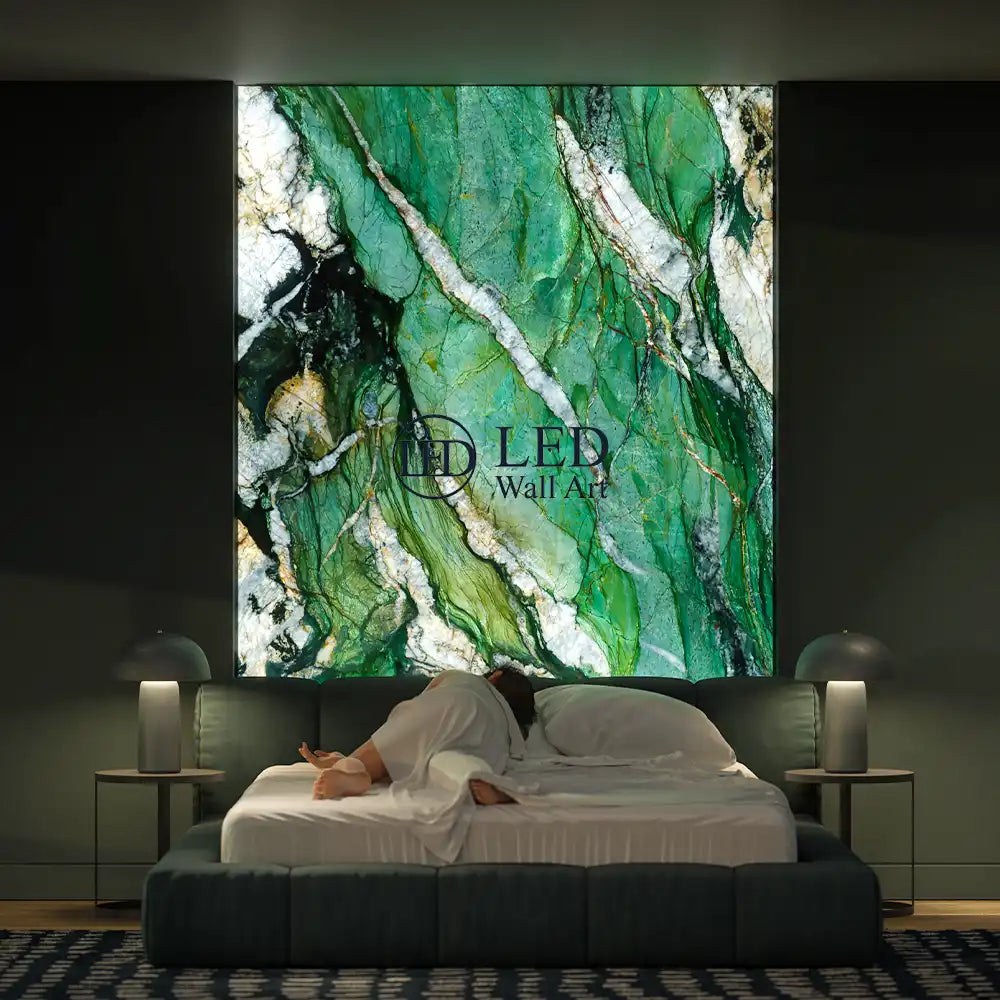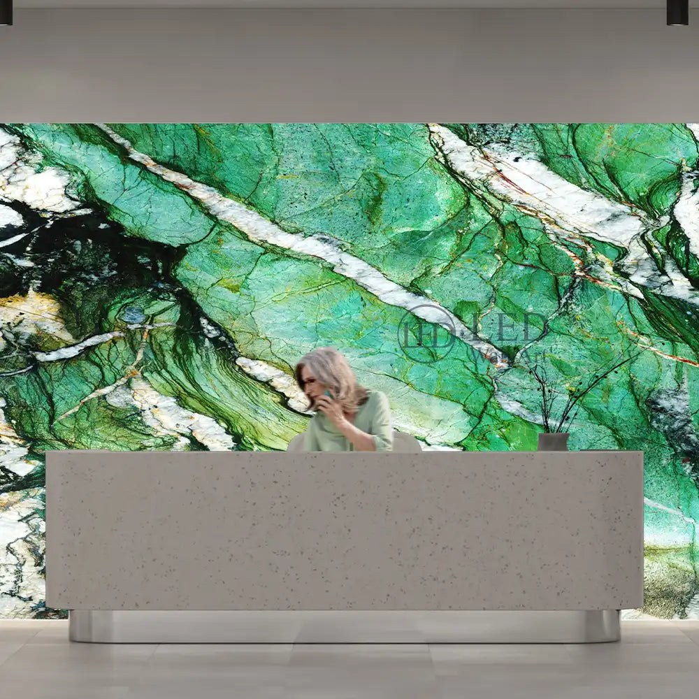 Transform your interior design with the breathtaking elegance of the Patagonia Green Stone Effect Texture, perfect for LED-backlit applications. This luxurious design captures the mesmerising beauty of natural stone, featuring a dynamic interplay of rich green hues and intricate patterns.